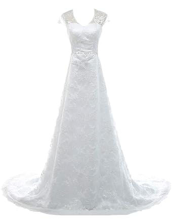 Vintage Lace Country Wedding Dresses Cap Sleeve Sheer Boho A Line Bridal Gowns by amazon.com