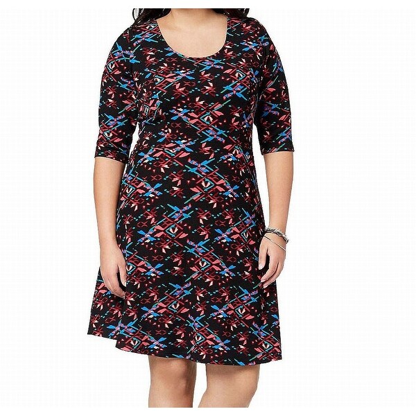 Fox Royal Neon Blue Black Womens Size 1x Plus Aztec A Line Dress by overstock.com
