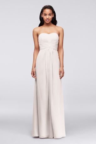 Long Strapless Chiffon Dress With Pleated Bodice by davidsbridal.com