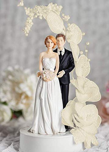 Bride And Groom Vintage Ivory Glitter Flower Arch Wedding Cake Topper Groom In Navy Suit by amazon.com