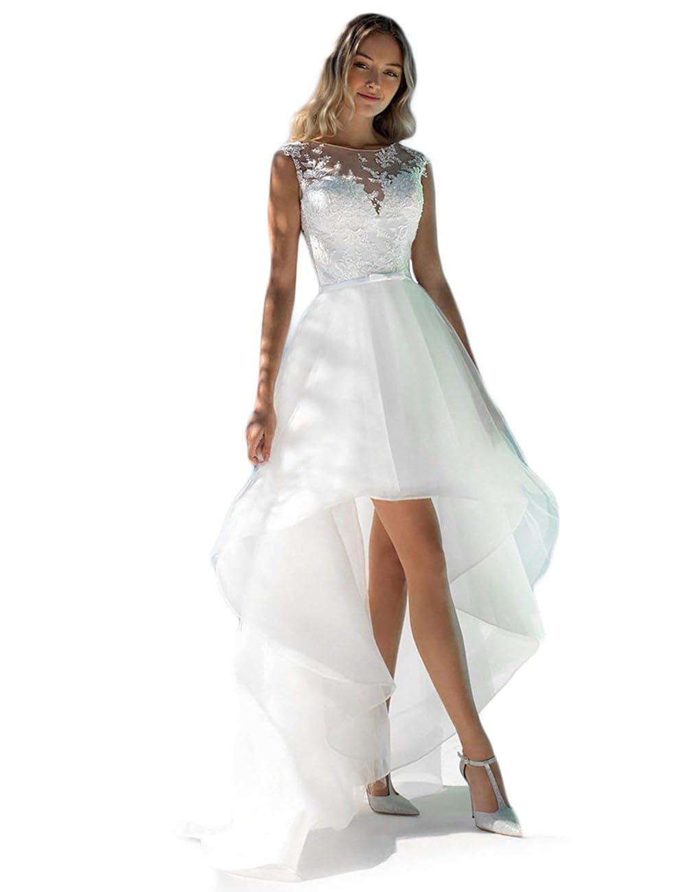 Liyuke Elegant High Low Beach Wedding Dresses Lace Appliques Bridal by amazon.com