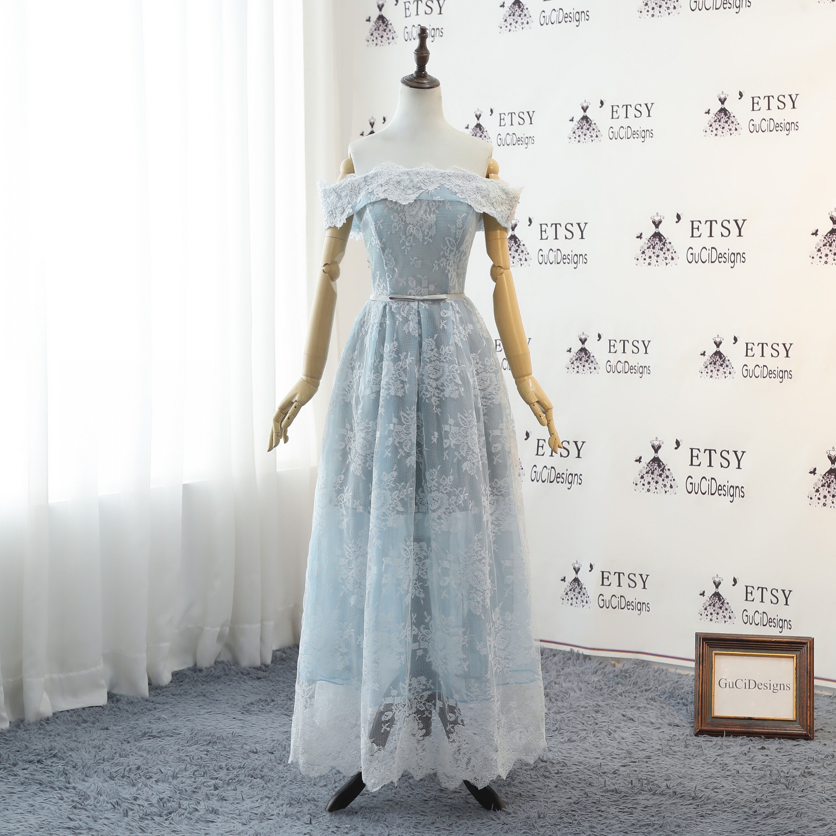 Sexy Off Shoulder Lace Wedding Dress Rustic Wedding Dress 2019 Prom Dress Blue White Women Formal Gown Lovely Homecoming Dress With Buttons by etsy.com