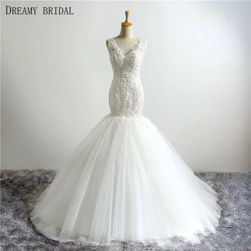 Us 149 0 Elegant Mermaid Long Vestido De Noiva 2017 Fit And Flare Deep V Neck Lace Beaded Sequined Wedding Dresses Photos In Wedding Dresses From by aliexpress.com