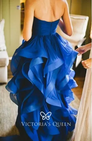 Uniquely Royal Blue Strapless Pleated Ruffled High Low Wedding Dress by victoriasqueen.com