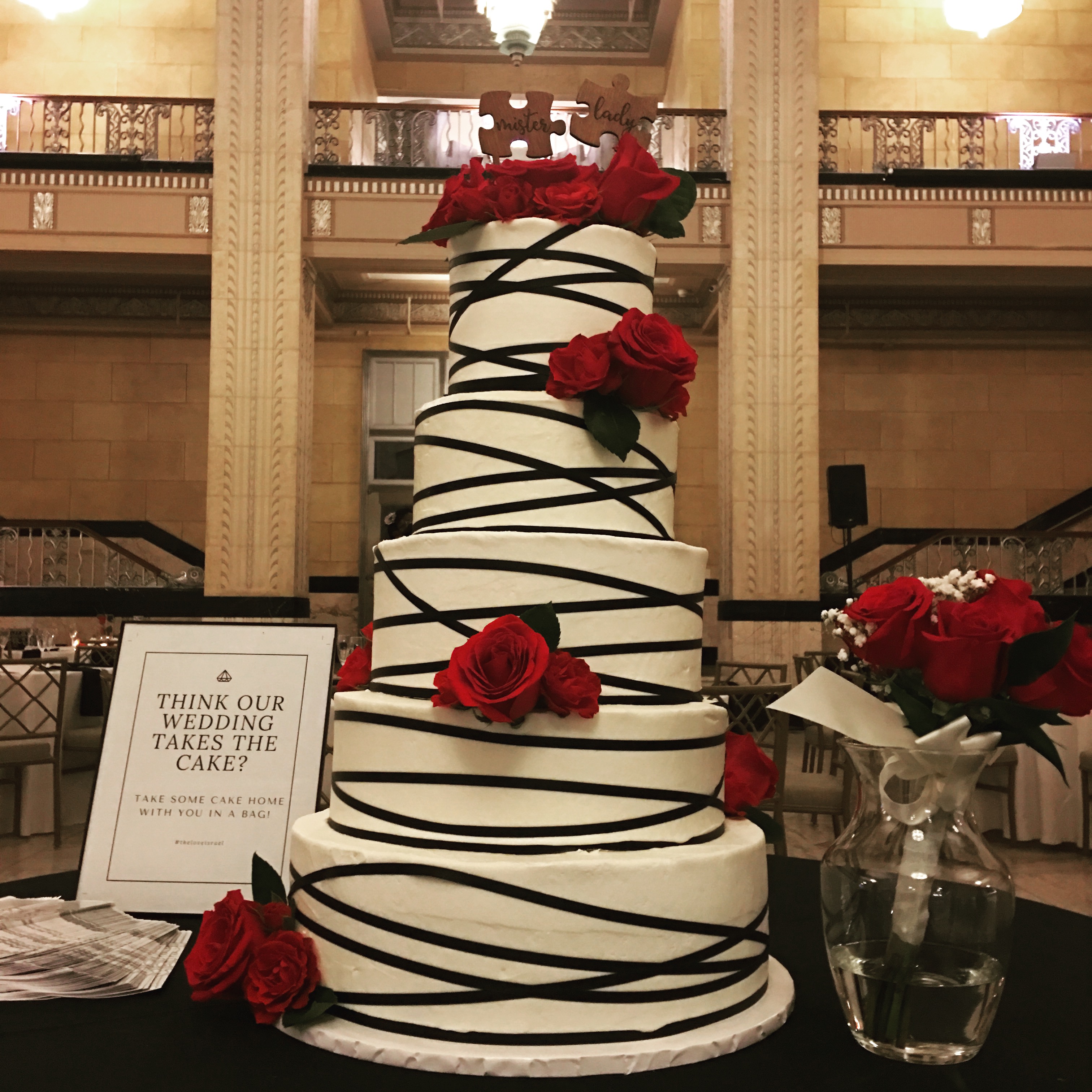Red Black White Wedding Cake Corcoran Caterers by corcorancaterers.com