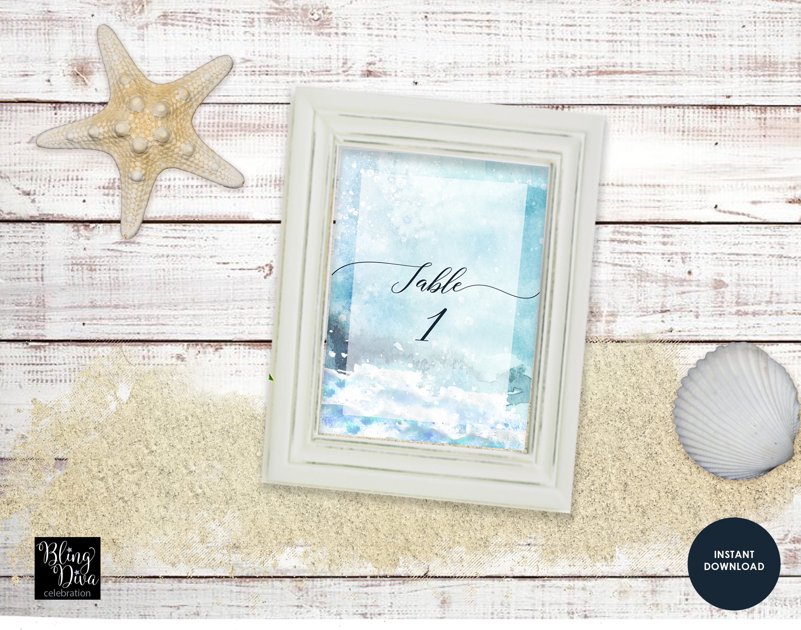 Ocean Printable Table Numbers by blingdivacelebration.com