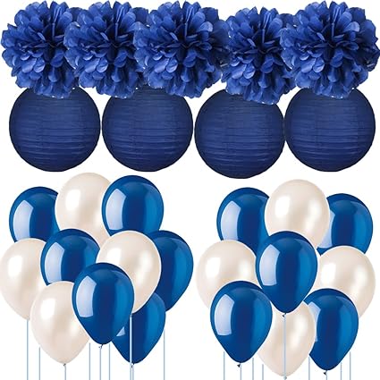 Navy Blue Wedding Decorations Tissue Paper Pom Poms Paper Lanterns With Balloons Kit For Birthday Party Graduation Party Supplies Nautical Party by amazon.com