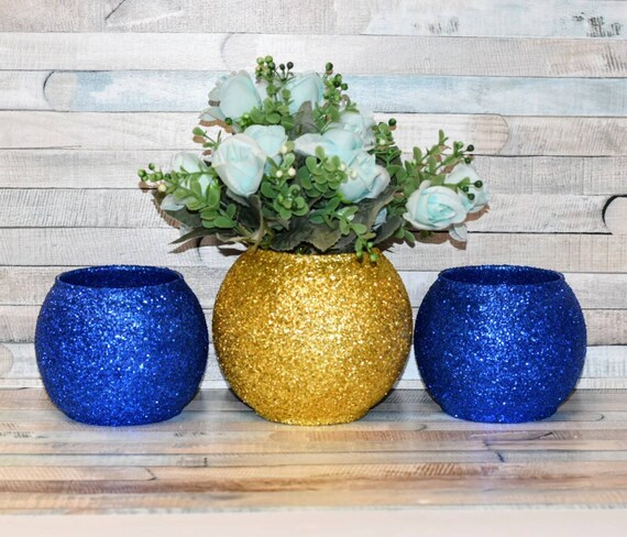 Royal Blue Wedding Shower Decorations Royal Blue And Gold Centerpieces Royal Prince Baby Shower Decor Glitter Vases Royal Blue Wedding Vases by etsy.com