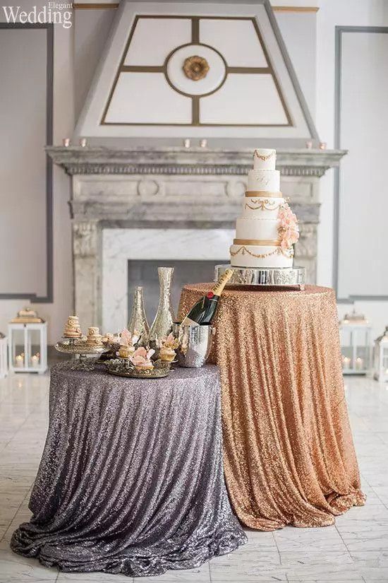 Champagne Sequin Tablecloths Rose Gold Cake Table by pinterest.com