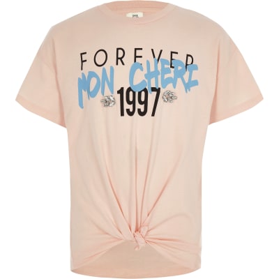Girls Pink Cheri Print Embellished T Shirt by us.riverisland.com