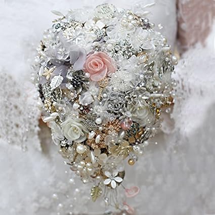 Bridal Bouquet Blush Silver Luxury Wedding Bouquet White Silver Bouquet Crystal Wedding Bouquet Blush Silver Bridal Bouquet Dj 29 by etsy.com