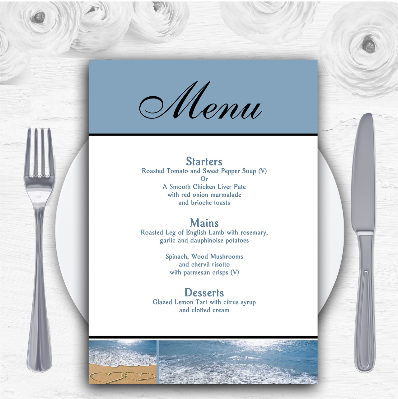 Love Heart Sand Beach Sea Personalised Wedding Menu Cards The