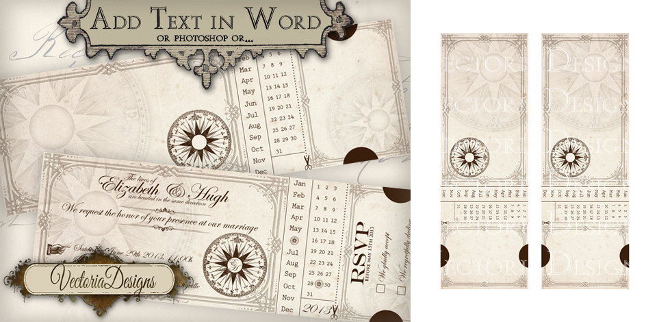 Vintage Ticket Wedding Invitations Printable Diy Jpeg Pdf Etsy