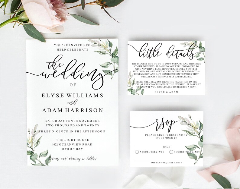 Printable Greenery Wedding Invitation Suite Details And Rsvp Etsy