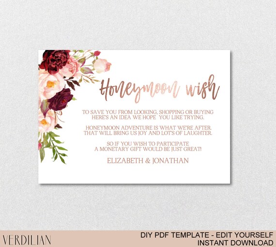Honeymoon Wish Card Printable Template Marsala Rose Gold Etsy