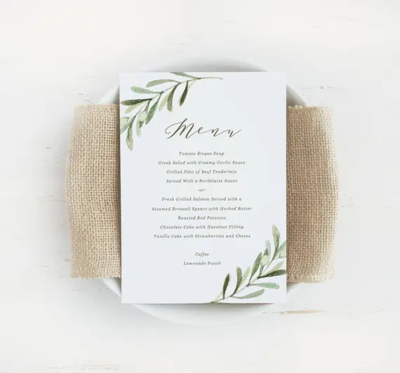 Greenery Wedding Menu Template Wedding Menu Cards Wedding Etsy
