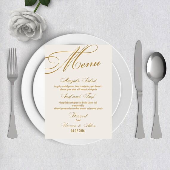 Gold Wedding Menu Card Printable Wedding Menu Bella Script