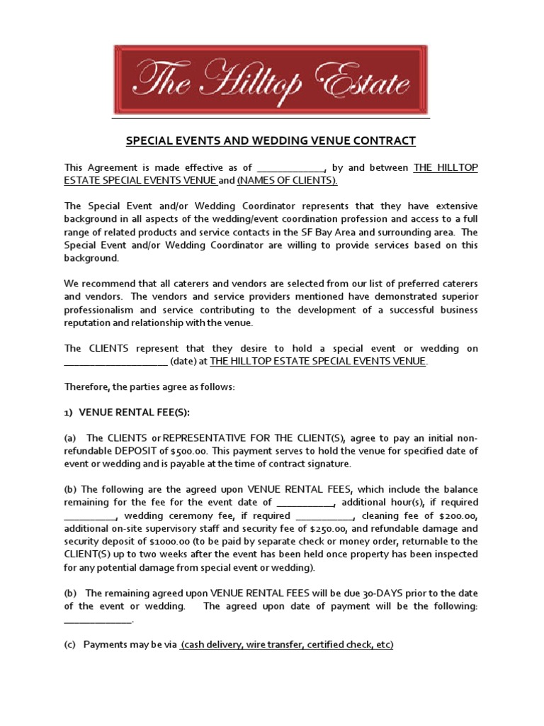 Wedding Coordinator Contract Template Wedding Invitation Collection